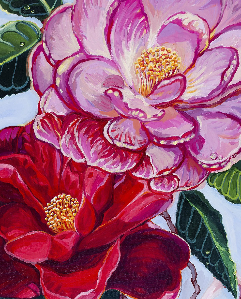 Pink Camellias and Polka Dot vase